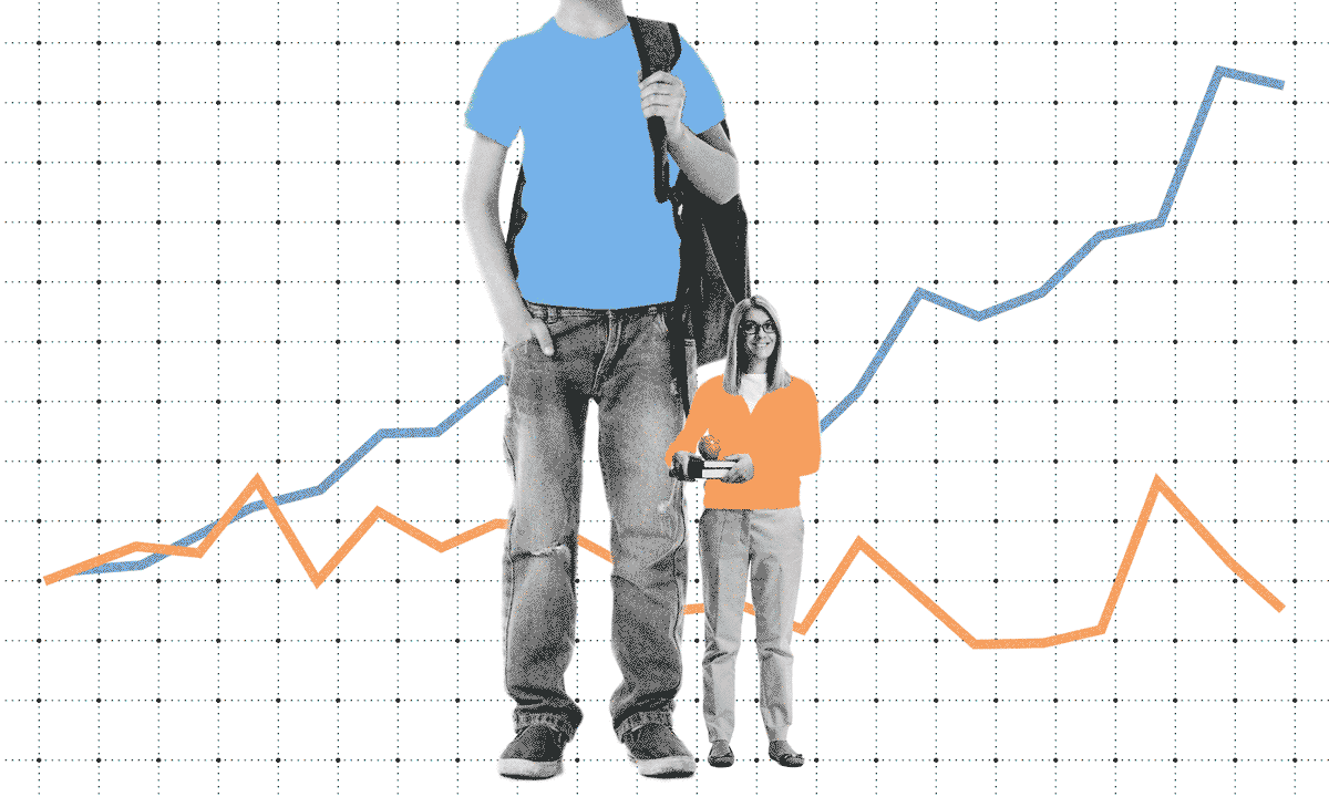 In districts nationwide, school spending has skyrocketed — in Los Angeles, for example, it’s up 108% from 2002 to 2022. But L.A’s teachers have seen a meager 5% salary increase during that time. In fact, teacher salaries nationally have hovered around an inflation-adjusted $70,000 for decades, lagging behind not only per-pupil spending, but earnings of other college-educated workers. Contributor Chad Aldeman and The 74’s art and technology director, Eamonn Fitzmaurice, document this disconnect in a series of interactive charts. See what’s happening in nearly 8,900 districts.