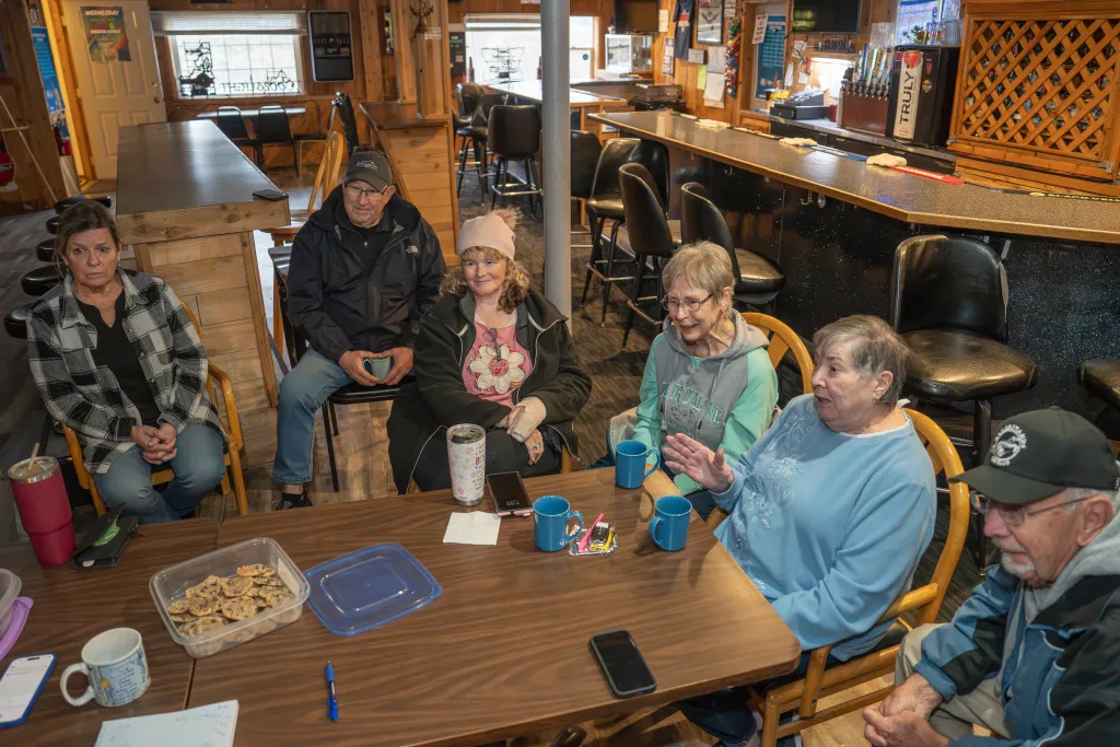 Long-time Kootenai County residents, several of whom are one-time Lakeland school district educators, gather early every morning at CJ’s Family Tradition Restaurant & Lounge in Rathdrum, Idaho, to discuss topics, including the flood of newcomers and the contentious school board meetings. -
