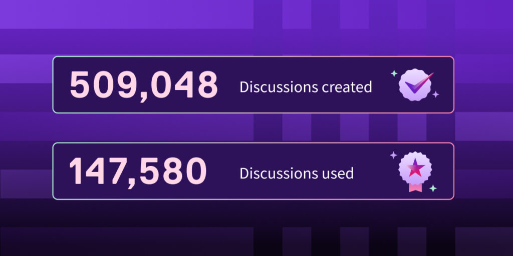 We also recognize that a good debate or small group discussion can help students shape their understanding of a new topic. While Gen Z might call it a vibe check, we’re filing this under your commitment to giving every student an equal voice. You created more than 509,000 discussions this year—interspersed within your lectures, readings and assignments. In turn, more than 147,000 discussions were used by students to assess their comprehension along the way.