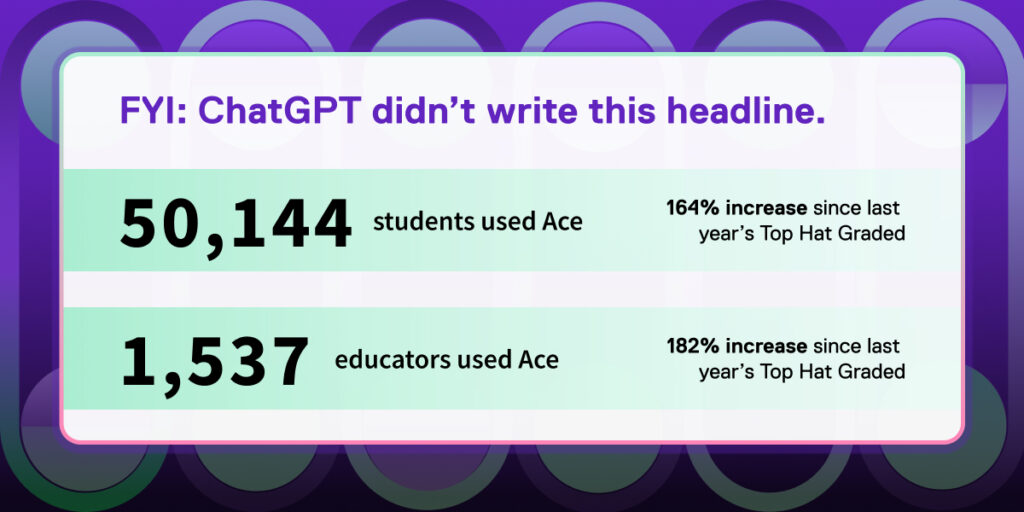 As the year draws to a close, we are once again excited to celebrate your commitment to equitable, personalized and AI-rich learning. We’re thrilled to unveil this year’s Top Hat Graded: our annual report that looks at how you and your students used our engagement platform and Ace, our AI-powered teaching and learning assistant, to your advantage. Let’s dive in.