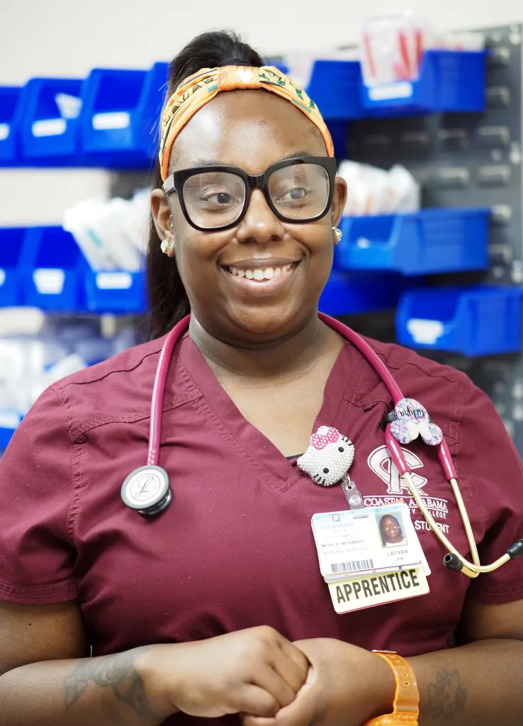 Mobile Infirmary has had over 90 nursing apprentices since the hospital’s program began in 2022, first with the LPN apprenticeship and soon after with the RN one. Graduates are required to stay at the hospital for one year after the apprenticeship ends, but most are staying beyond that. Only five have left so far, according to Stefanie Willis-Turner, the director of nursing school partnership and programs at Mobile Infirmary.