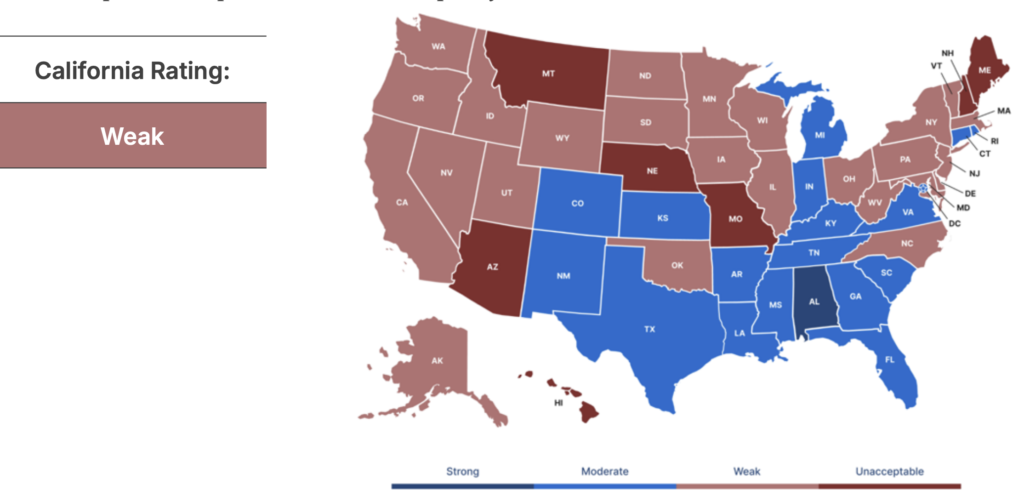 The report also grades every state’s policies on math instruction, from preparing teachers to coaching them after they’re in the classroom. California and two dozen states are rated “weak,” ahead of seven “unacceptable” states (Montana, Arizona, Nebraska, Missouri, Alaska, Vermont and Maine) while behind 17 “moderate” states, including Texas and Florida, and a sole “strong” state, Alabama.
