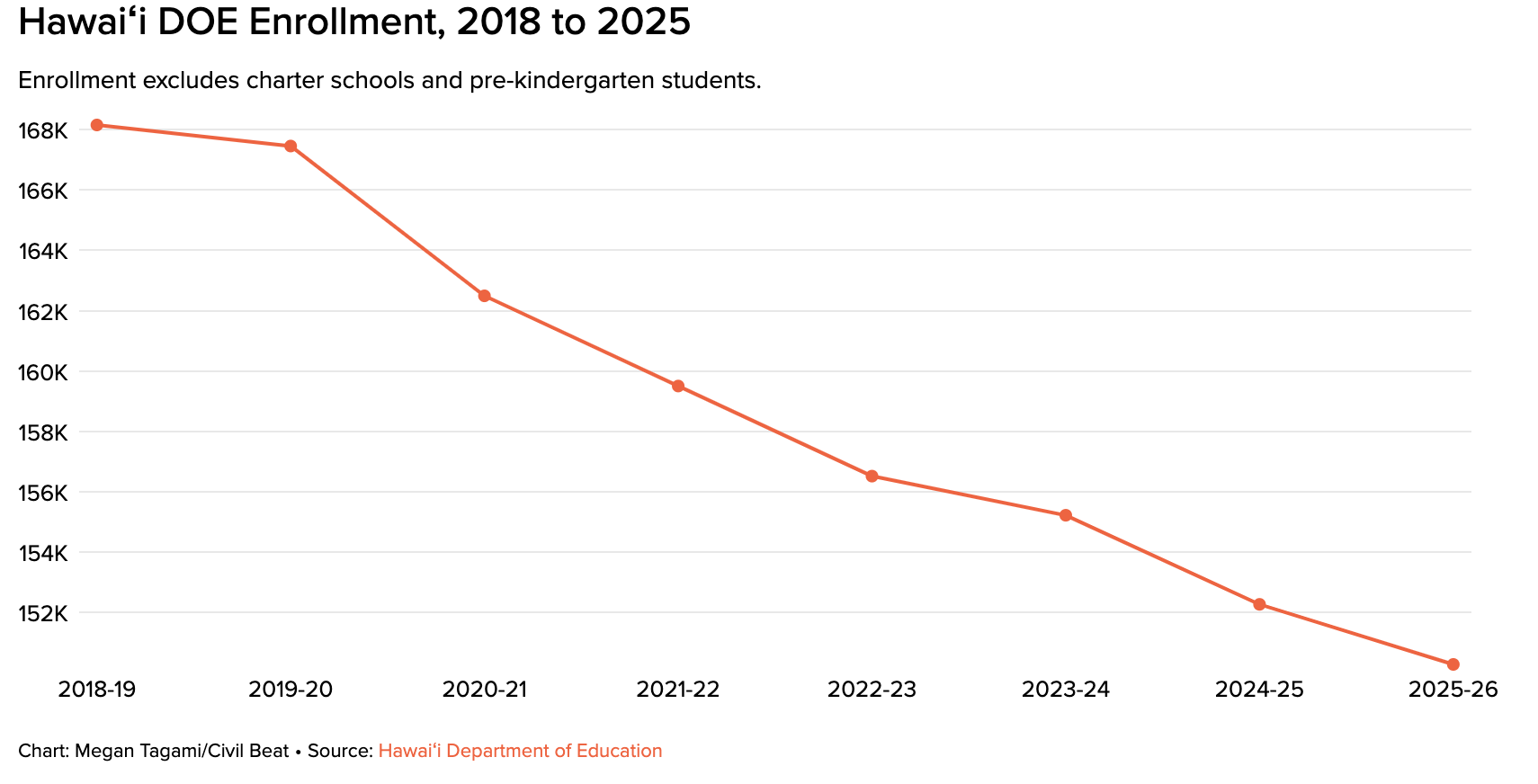Already, the education department has seen its enrollment drop by nearly 12% over the past decade, with school leaders citing the state’s declining birth rate and the number of families leaving Hawaiʻi in recent years.