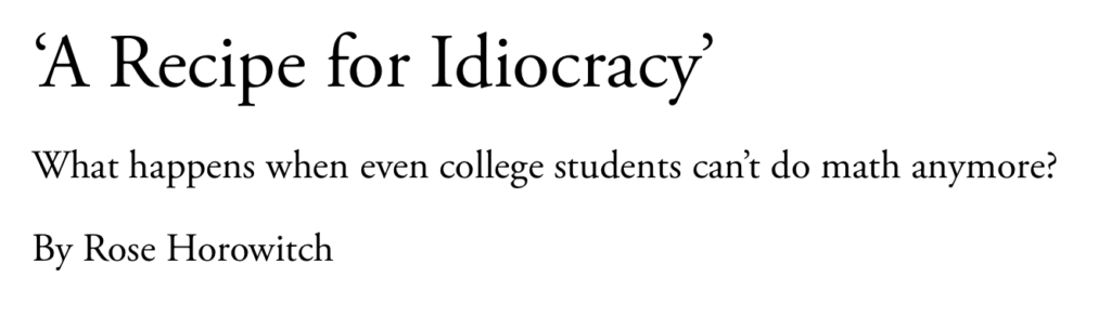At The Argument Kelsey Piper dug into the UCSD math issue, which is hardly only a problem at UCSD or in California.
