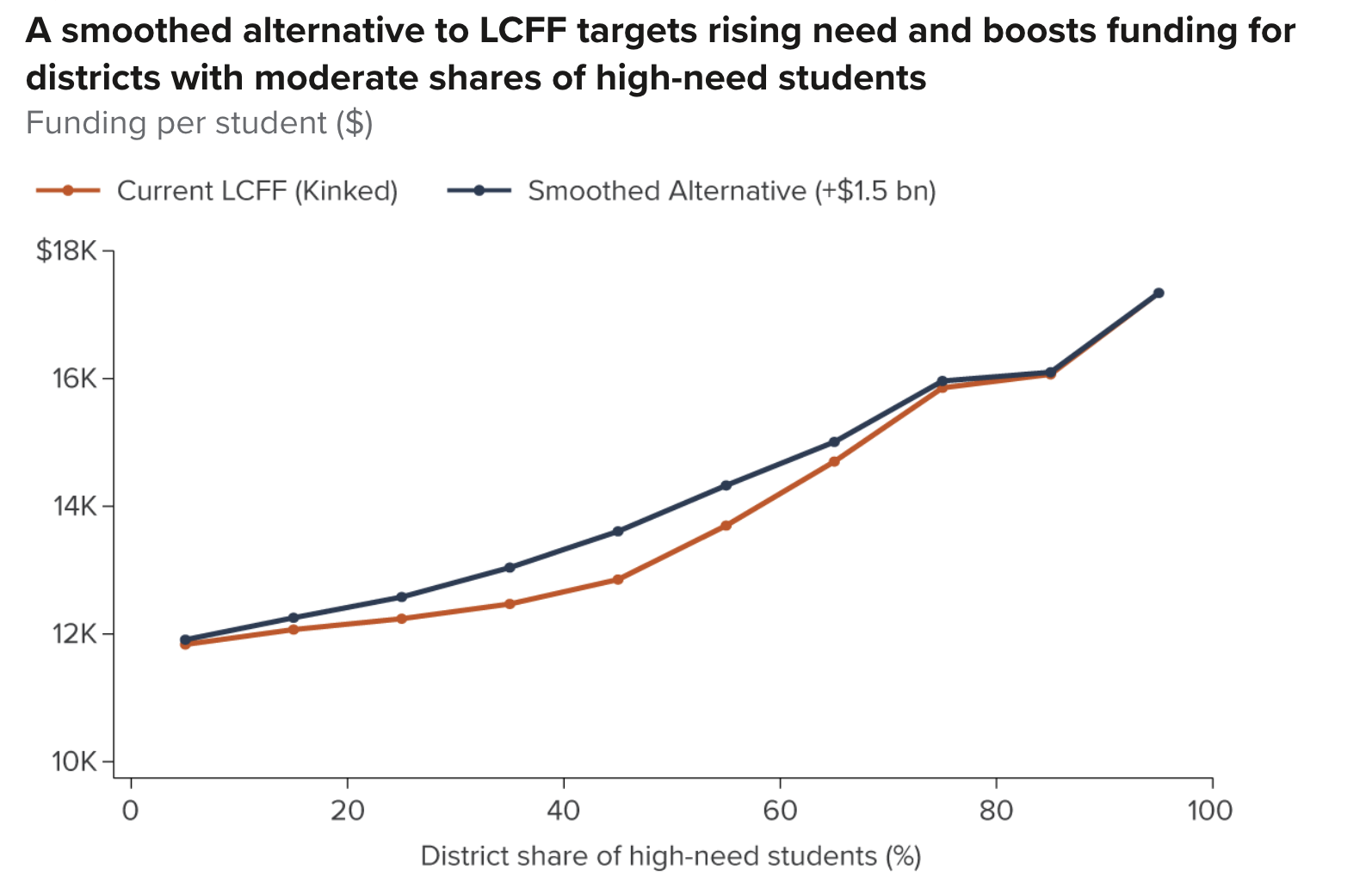 Cost: $1.5 billion, estimates the PPIC, by gradually sharing concentration funding and “smoothing the funding curve.”