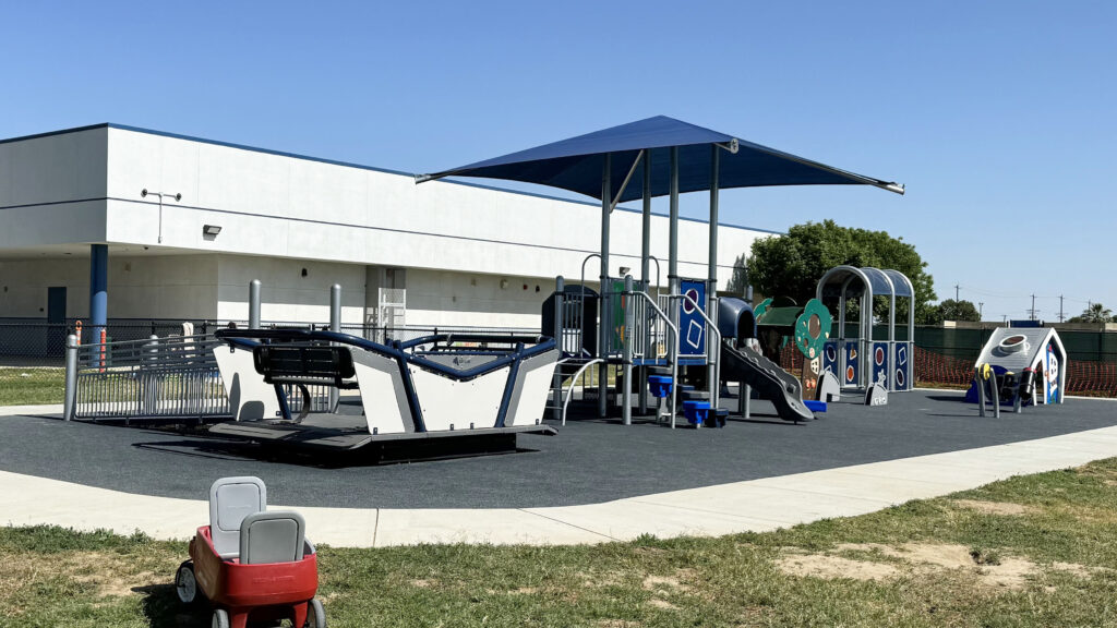 Jolie Critchfield, director of child development for Marysville Joint Unified School District in Yuba County, said her district used funding from the Inclusive Early Education Expansion Program to train staff and completely revamp their preschool programs with new materials and playground equipment, like swings built for children with disabilities. The district also moved all “special day classrooms” alongside general preschool classrooms, so that children with disabilities are able to interact with other children on the playground and spend time in class with them as well.