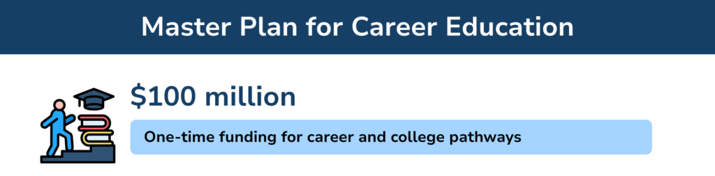 - One-time infusion of $100 million to increase access to college and career pathways for high school students.