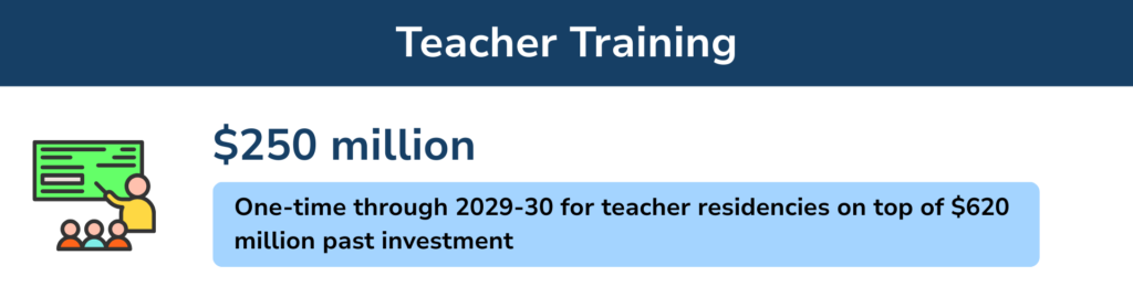 The state invested $620 million into educator residencies over the last five years to address persistent educator shortages and improve instructional quality. Research shows that residents complete teacher preparation at higher rates and remain in the job longer.