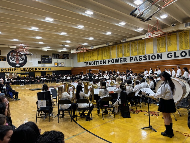 Student band members perform a concert at the Pacifica School District.
