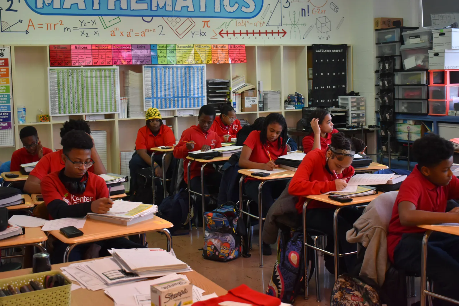 Students in a 7th grade classroom work independently to solve math problems at Center City Public Charter Schools’ Congress Heights campus on Jan. 22, 2026, in Washington, D.C.
