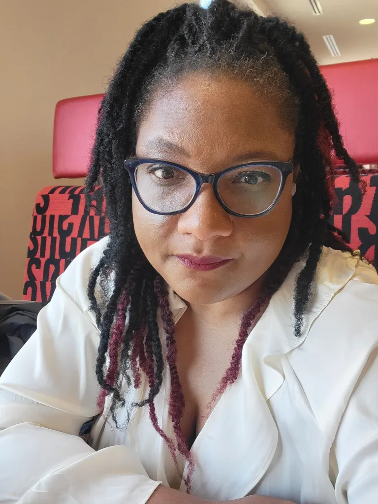 [Jo:] Oh, yeah. There were times, and I wrote about it. So I, when I first started teaching at universities, I taught at Purdue. I wrote about this, there’s an article on Zora and Zora Magazine that says that the English professor teaching MAGA babies is not all right. And I wrote about teaching in central Indiana, at a satellite campus. And I was always the first black teacher these students had, and they were predominantly white. And I had a scripted way of going about things. I was really, really hesitant about being my authentic self. And turns out, my department wasn’t, wasn’t okay with my authentic self. And I wasn’t really giving them everything I’m giving now, with the purple hair and everything else. I wasn’t giving them all that. And I still, that it still did not go well for me. That was still around the time where I was like still listening to things I heard growing up, which most neurodivergents will tell you. They hear the same thing. You’re too much, you’re too wild. You got to be a certain, you got to look a certain way. You got to dress a certain way, you got to talk a certain way. No, you can’t talk about certain things at certain places. And, that all came down to I couldn’t be me. And that whole point in my life, I think just taught me that even when I’m following the rules, I still cannot win. During that time, those, I, had a group of students who did not like my policies, who went to my department head and told her that I was unapproachable as a professor, and they used a couple other that were dog whistle-y type terms, to basically have my department head tell me that I needed to change my hair, my dress, the way it talked, I need to make myself more approachable to.
